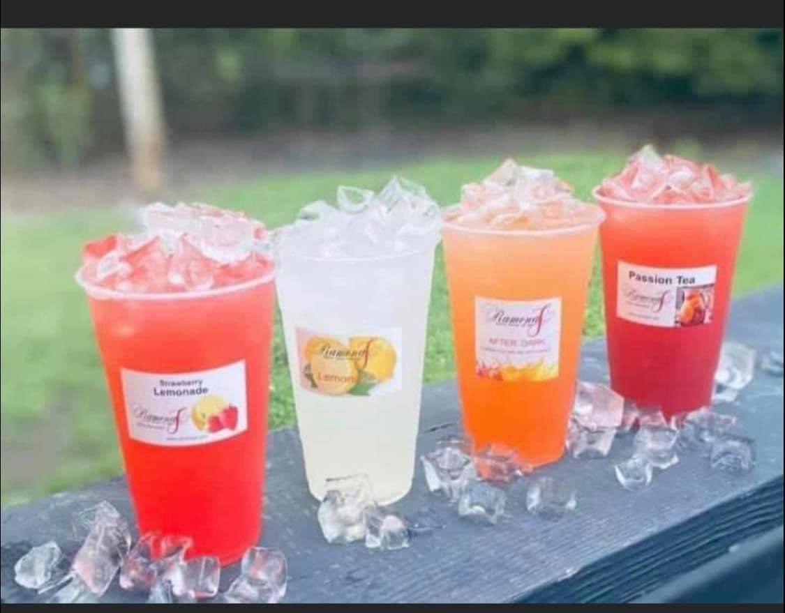 Experience the unparalleled taste of Ramona J's homemade Lemonade, Strawberry Lemonade, After Dark, and Passion Tea! Each beverage promises an impactful taste that will tantalize your taste buds. Do you have a favorite?