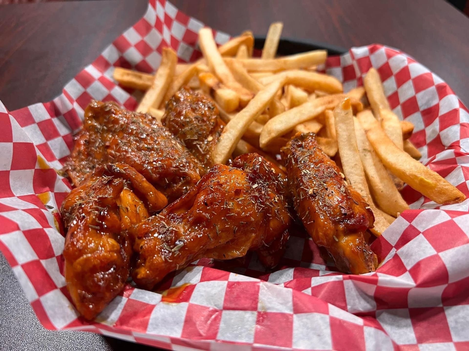 Indulge in our buffalo style wings and fries, available in 6. 12, and 18 count varieties with a range of flavors including hot, Cajun ranch, sweet love, mild, lemon pepper, and more!