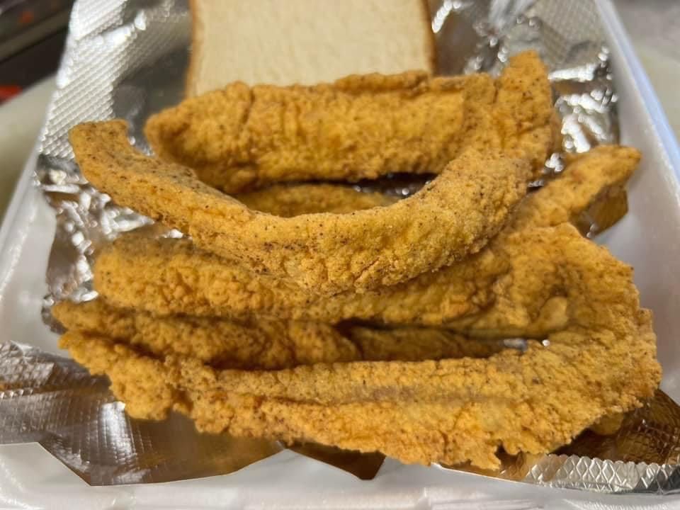 Enjoy our golden fried catfish fillets, fried to perfection every time, served with french fries and a piece of bread